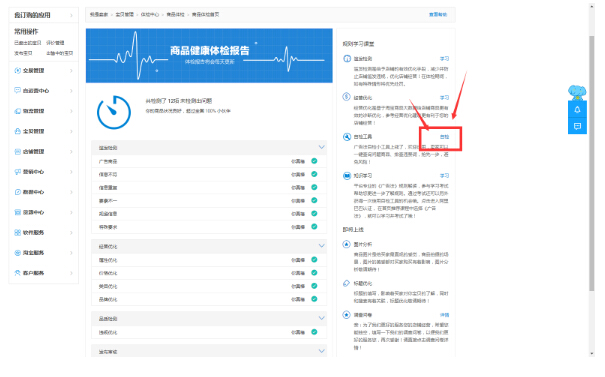 首先,我们进入【卖家中心】,然后点击【宝贝管理】,再点击【体检中心】,进入到我们店铺自检的后台