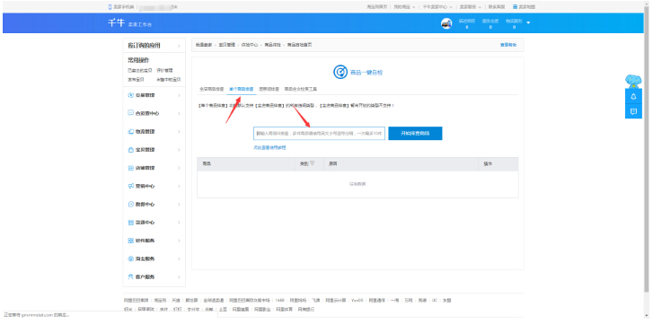 单品排查跟全店排查类似,从图上所示位置,我们把要检查的产品的ID号输入进去以后,我们就可以针对我们要排查的单品来进行自检