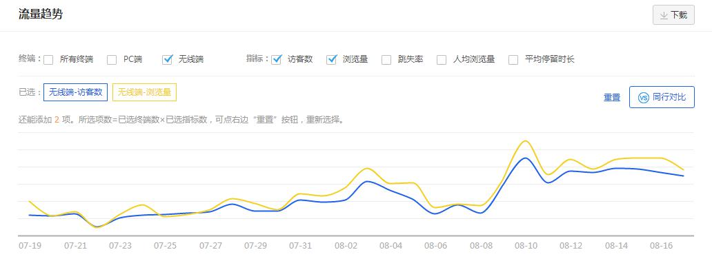 首先我们打开生意参谋,然后在流量面板里面的流量概况可以看到一个流量趋势,而在流量趋势面板里面我们可以看到无线端的一个浏览量和访客数上升和下滑的趋势,然后我们可以根据这个上升和下滑的趋势,并注意是什么时候下滑的。