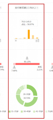 看新买家访客人群,消费层级在70-145,未支付访客0-15,再看一下性别,女性居多,年龄段在26-30,成交的访客年龄会偏大些,所以说成交访客有一定的消费能力,但是宝贝匹配到的不符合购买需求,就会流失客户,这时需要进一步投放优质人群。